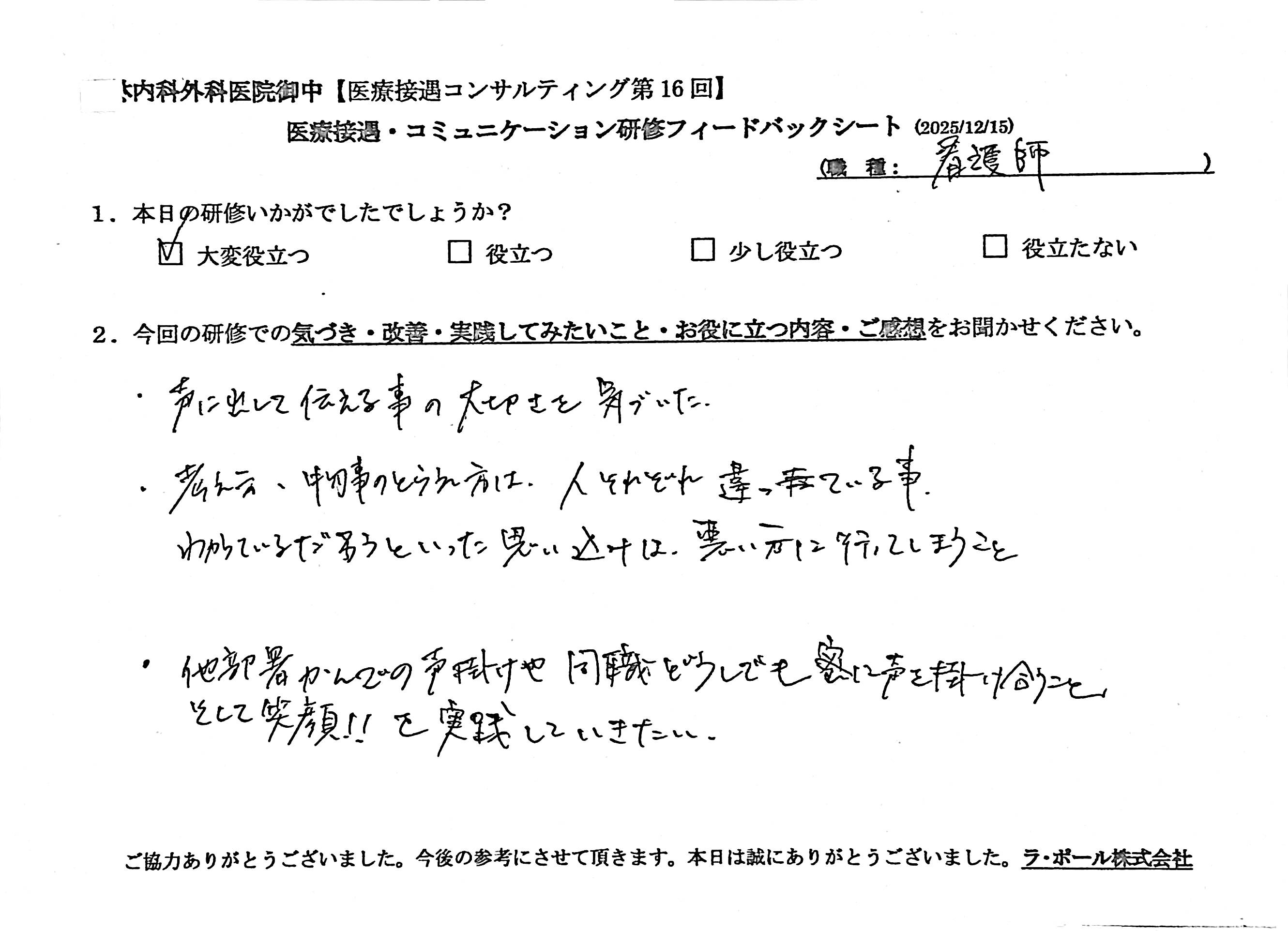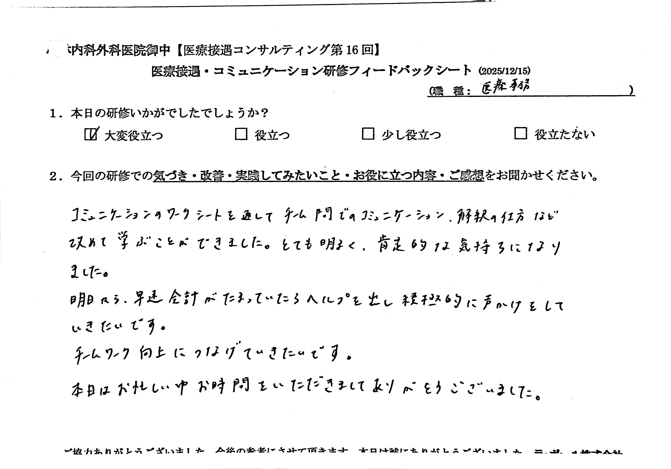 研修開催日:2025年12月15日開催 K内科外科医院様