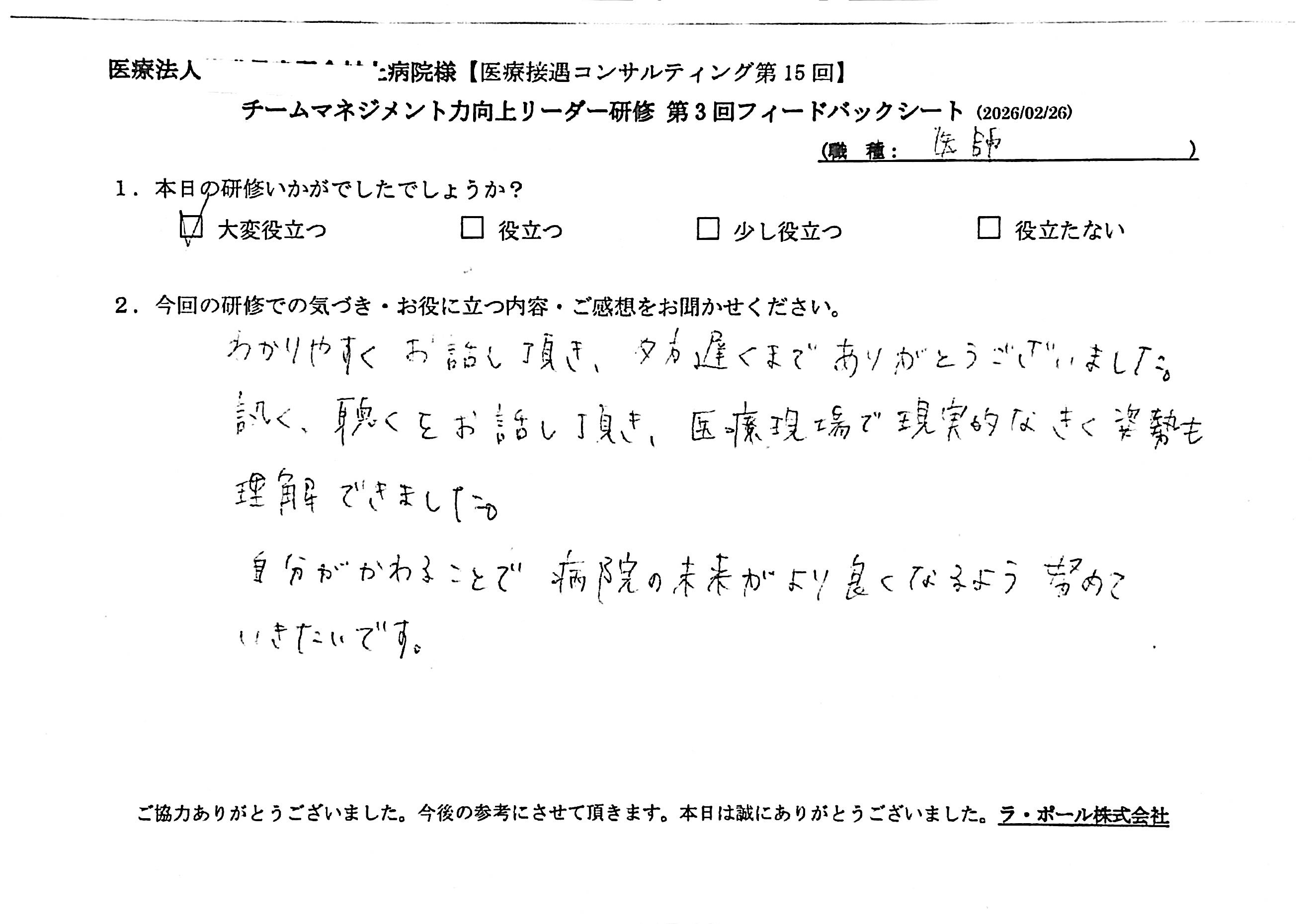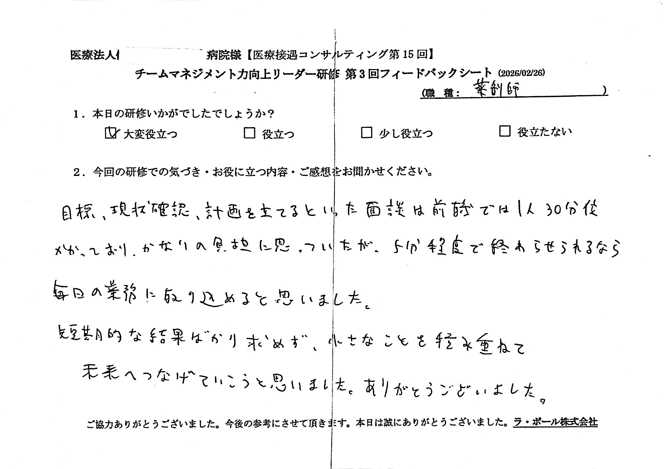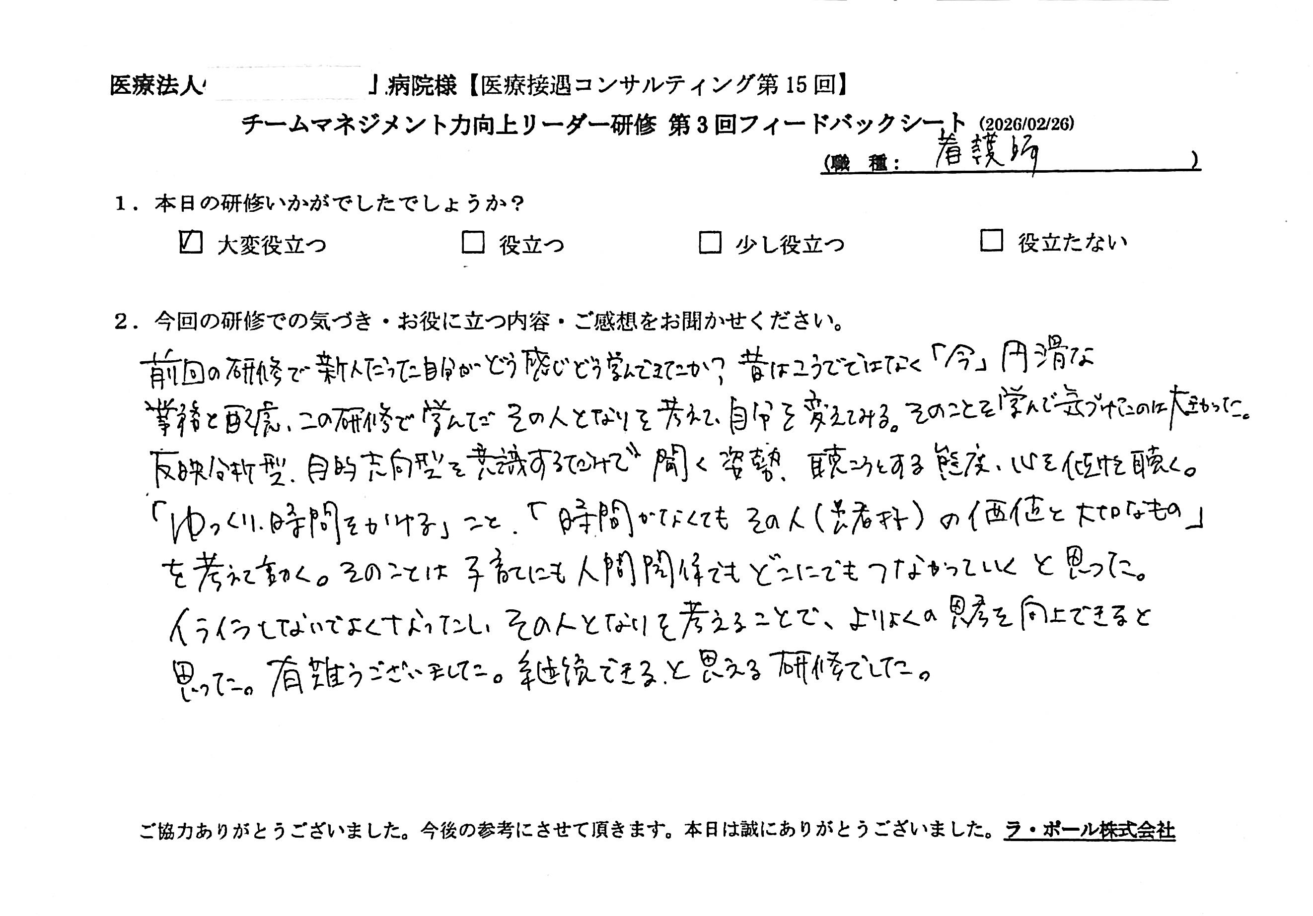 【テーマ:医療接遇コンサルティング第15回(チームマネジメント力向上リーダー研修第3回)】