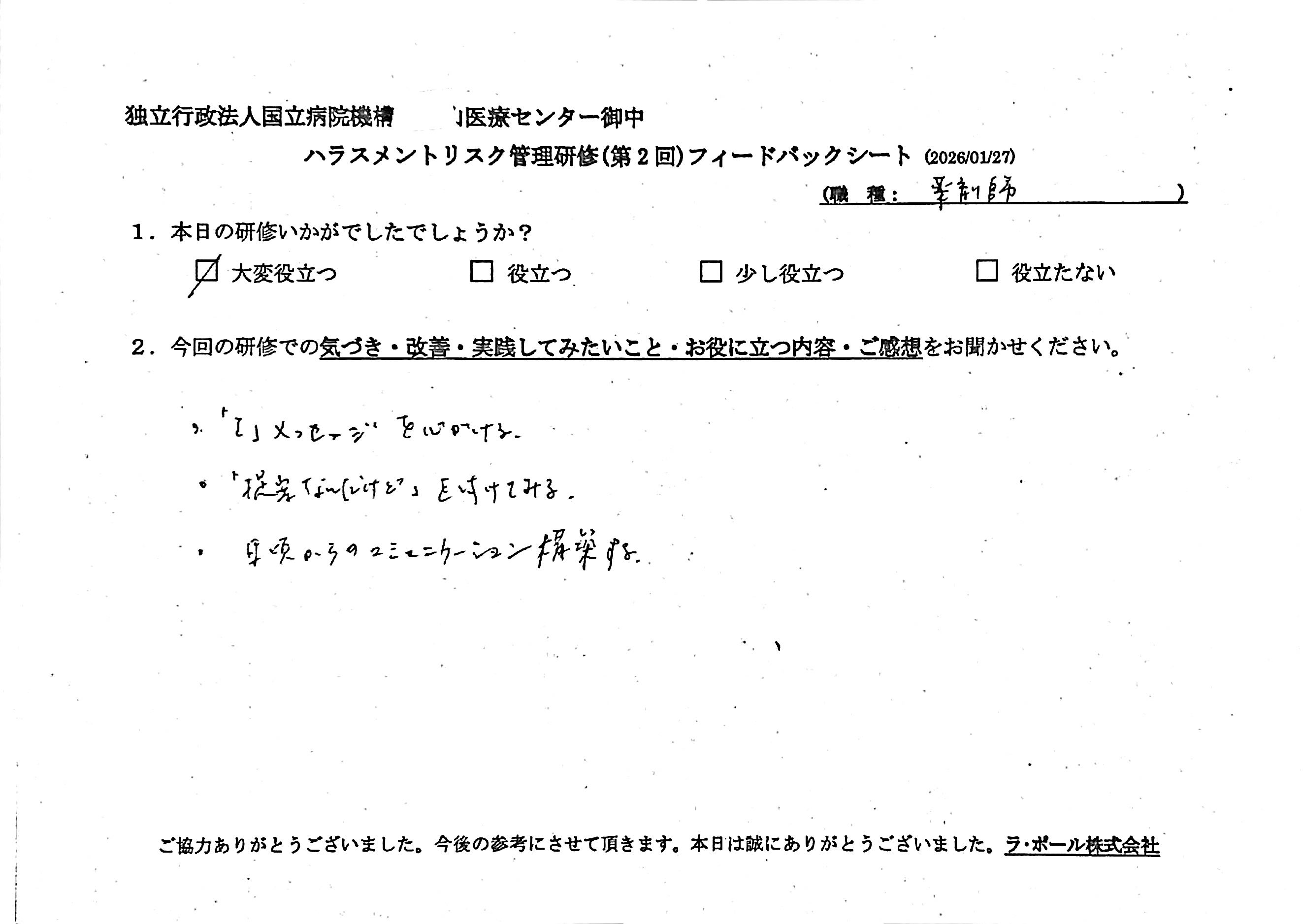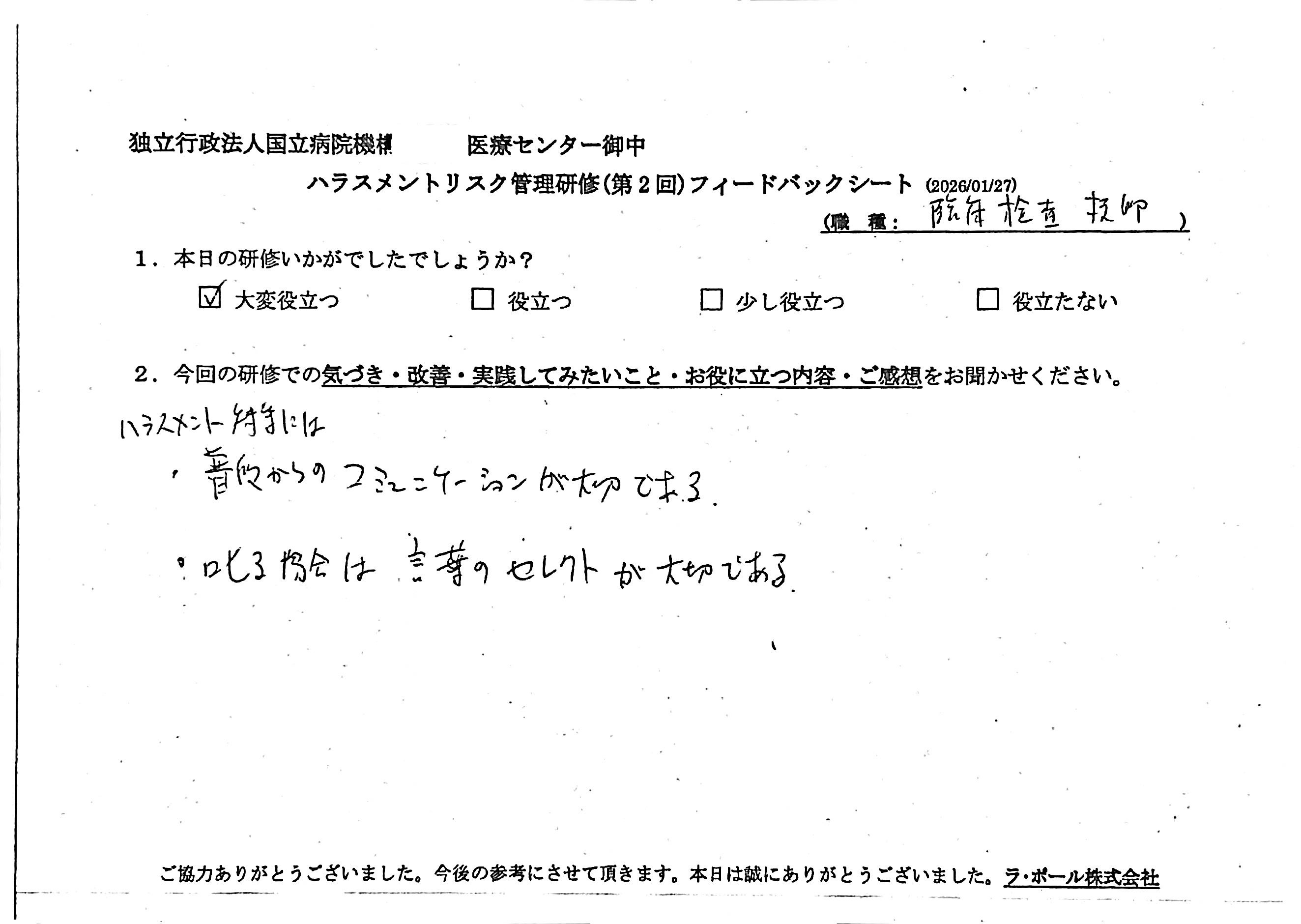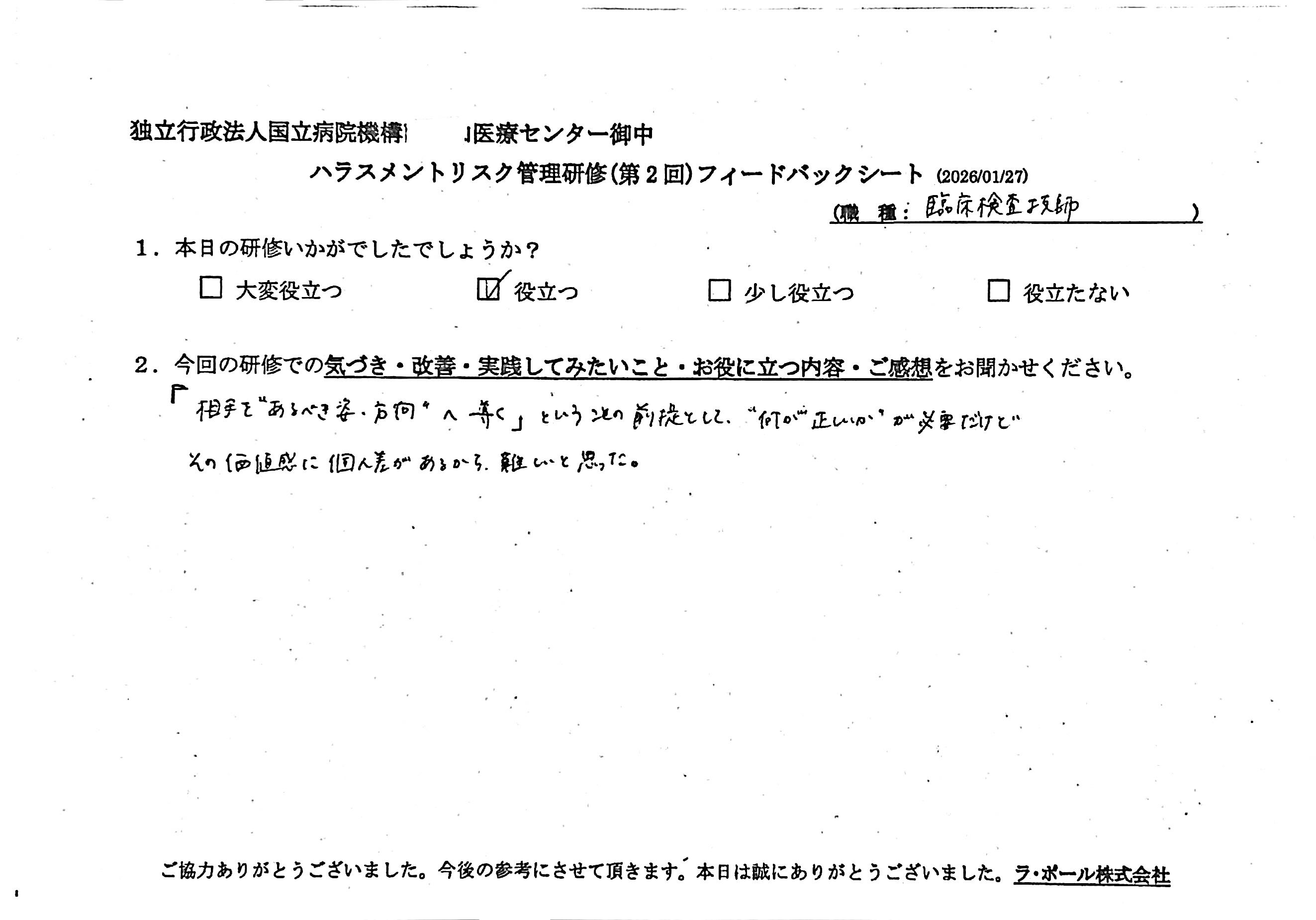 研修開催日:2026年1月27日開催 独立行政法人国立病院機構M医療センター様(参加数36名)